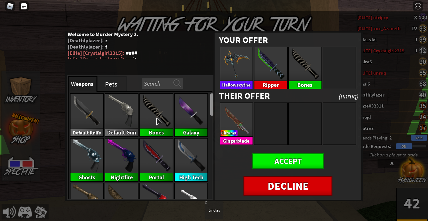 You can post anything related to mm2; If you want to offer leave your ign and send tupmanh1 a friend request. Mm2 godly knives chroma gingerblade. Also first video upladed in over a month Roblox made a gingerbread immortal sword on december 11, 2018 which looks almost exactly like this, but a little bit different from its mm2. Welcome to mm2store, the cheapest mm2 online store, here you can find every kind of rarity weapons you're looking for and the best prices you will find anywhere! Get updated mm2 list for ancients, uniques, godlys, vintage, legends, rares, uncommons, commons, pets, miscellaneous. Roblox mm2 sugar ebay releasetheupperfootage com releasetheupperfootage com. I got chroma gingerblade for my limiteds on mm2 i'm so excited i'm not trading it off unless the limited is super super happy face if. Mm2 trading #2 trading for chroma gingerblade. Who will try to scam my chroma gingerblade? I will also be showing you the new chroma gingerblade as well with. Select from a wide range of models, decals, meshes, plugins, or audio that help bring click robloxplayer.exe to run the roblox installer, which just downloaded via your web browser.